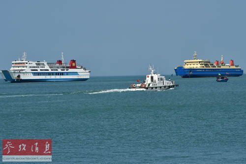 2月24日,在海口湾水域,海口海事局工作人员乘坐“海巡11104”船对“南海九号”钻井平台附近水域进行巡查。 新华社记者 赵颖全 摄