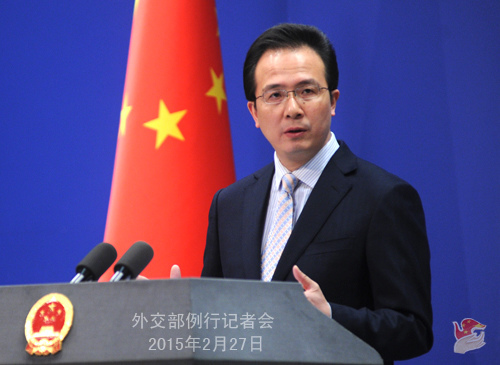 中新网2月27日电 据外交部网站消息,外交部发言人洪磊今日在外交部例行记者会上就美官员指责中国正在南海派驻舰船,进行岛礁建设一事答问时称,希望美方恪守承诺,谨言慎行,多做真正有利于中美关系发展及地区和平稳定的事。
