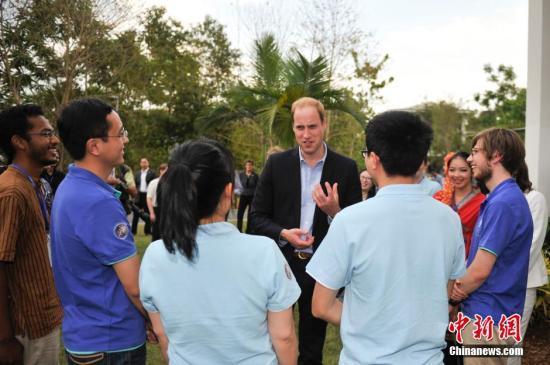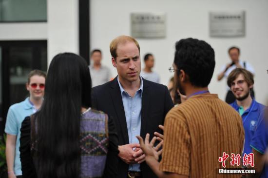 3月4日,英国剑桥公爵威廉王子,来到云南省西双版纳傣族自治州与青年学生进行交流。中新社发 刘冉阳 摄