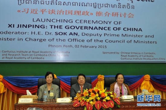 新华网金边2月2日电(记者薛磊 李弘)《习近平谈治国理政》推介研讨会2日下午在柬埔寨首都金边举行,柬埔寨副首相兼内阁大臣索安、中国驻柬埔寨大使布建国、柬埔寨王家研究院院长克洛堤达以及当地官员、学者等数百人共同出席了此次研讨会。