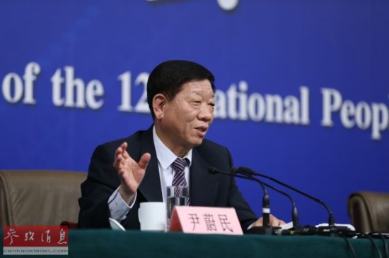 3月10日,十二届全国人大三次会议新闻中心举行记者会,邀请人力资源和社会保障部部长尹蔚民、副部长胡晓义对“就业和社会保障”的相关问题回答中外记者提问。 新华社记者 邢广利 摄