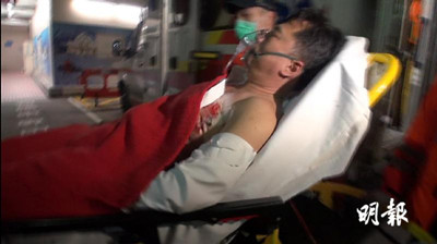 一名男店员左胸中枪。(图:香港《明报》网站)