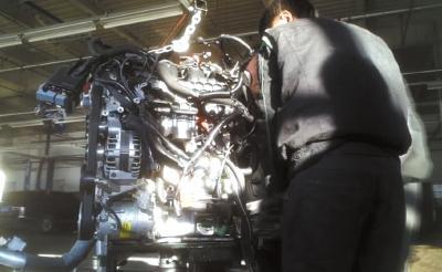 路虎4S店的工作人员正在更换变速箱。网络截图