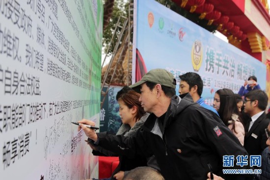 3月15日,江苏常州武进区的经营者代表在诚信经营签名栏上签名。当日是国际消费者权益日,江苏常州开展主题为“携手共治,畅想消费”的宣传活动。相关职能部门向市民发放宣传手册,讲解消费维权案例,共同倡导诚信消费。新华社发(陈暐 摄)