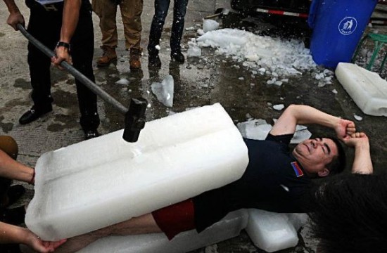 【延伸阅读】陈光标上演“胸口碎大冰” 坐垃圾桶应冰桶挑战