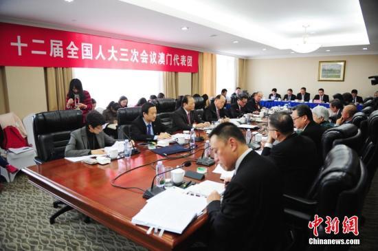 3月5日下午,十二届全国人民代表大会第三次会议澳门代表团审议国务院总理李克强所作的政府工作报告。中新社发 陈文 摄