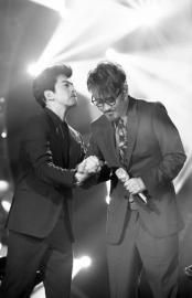 谭维维无疑是最幸运也是最幸福的,决赛竟然把自己的偶像崔健请来帮唱。26日彩排,她和崔健演唱之后说了一句掏心窝的话:“和崔健同台,三生有幸。”完全是歌迷对偶像的尊敬。采访中,谭维维告诉记者:“和崔健其实只是几次机缘巧合的合作,自己都没想过有一天会把崔健请到这个舞台上来。”然而,老崔真的来了。