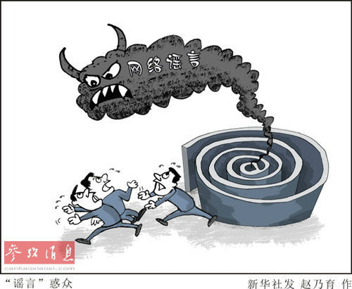 漫画:“谣言”惑众 来源:新华社