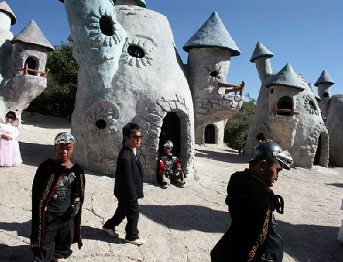 小人国就好像《格列佛游记》中的里里普特。小土丘上,散落着塑料的蘑菇房,如同1990年代任天堂游戏机里的布景。一群小矮人列队走出,开始每天的游行表演。其实,他们并不住在蘑菇房里,宿舍就在不远,有取暖条件。