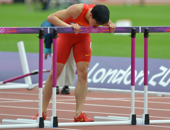 “我再次在奥运会上带伤忍痛上场,虽然已经知道自己凶多吉少,但我当时真的很想替自己的人生扳回一局,我不想人们再骂我是懦夫、是临阵脱逃的‘刘跑跑’。虽然在疾跑后起跨的一刻,我已感觉到自己的脚跟突然变空了,虽然我在跑道上摔倒了,虽然我只能带着遗憾和无奈单腿蹦到终点,虽然我只能似乎是告别式地最后亲吻一下我的栏。”