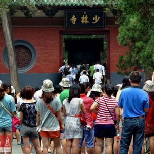 资料图片:2012年8月4日游客在少林寺山门外等候进寺参观。