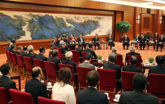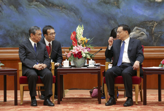 国务院总理李克强14日下午在人民大会堂会见日本国际贸易促进协会会长河野洋平和他率领的日本经济界大型代表团。
