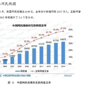 2015年2月3日,中国互联网络信息中心(CNNIC)在京发布第35次《中国互联网络发展状况统计报告》显示,截至 2014年12月,我国网民规模达6.49亿,互联网普及率为47.9%。其中,手机旅行预订以194.6%的年度用户增长率领跑移动商务类应用。