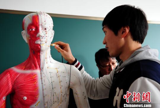 中新网烟台3月23日电 (王娇妮 杨兵)23日,在位于烟台的滨州医学院的推拿针灸教室,几名韩国留学生面对一具人体穴位模型,仔细地观察研究,并时不时用点读笔触碰穴位点,听教学器材朗读各穴位的发音和功能。