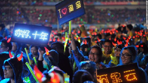 阿里巴巴公司的工作人员正在庆祝公司成立10周年(图片来源:美国有线电视新闻网财经频道)