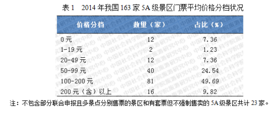 注:(1)不包含部分联合申报且多景点分别售票的景区和有套票但不强制售卖的5A级景区共计23家;(2)含有旺季门票价格200元(含)以上的景区。