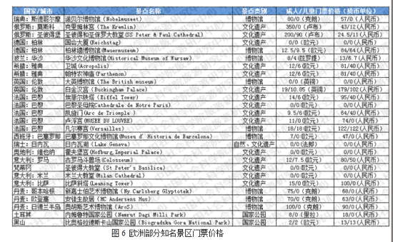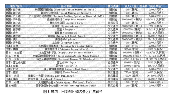 8、欧美日韩等国家知名景区门票价格大多低于中国