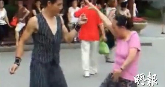 香港《明报》4月14日报道,网上流传一条内地大妈跳舞的片段,一名大妈与男舞伴跳出韩国组合Wonder Girls的《Nobody》,他们的舞姿并非原唱组合可爱少女风,却是以夜场风格,按音乐轻快节奏摆动身体,手部亦相当配合放在身体不同位置。