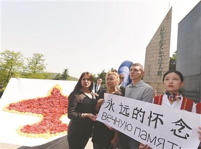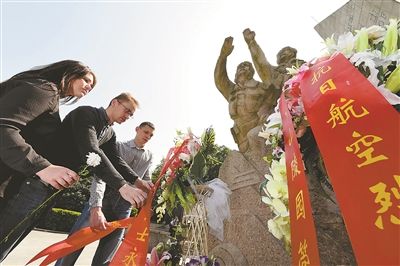 中图、下图:5月5日,南京各界人士、俄罗斯留学生代表以及专家学者在南京航空烈士墓凭吊苏联援华抗日航空烈士。
