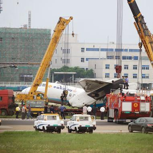 2014年2月4日:内地幸福航空一架新舟60型客机在郑州新郑国际机场落地滑行中,前起落架意外收起,机头着地,无人伤亡。