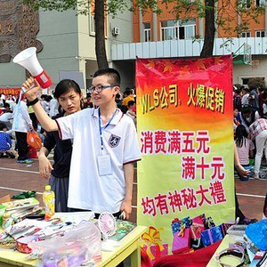 学生开“公司”摆摊叫卖创业,收益捐慈善。中新社发 张勇 摄