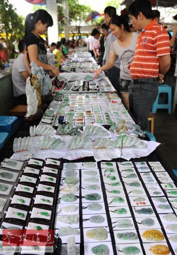 资料图:云南省瑞丽,消费者在选购珠宝玉石。新华社记者 蔺以光 摄