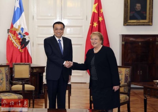 智利是中国在拉美的第三大贸易伙伴。智利驻华大使豪尔赫·埃内表示,李克强访问期间将签署几项重要协议。美洲对话研究中心专家玛格丽特·迈尔斯说:“中企希望未来几年加大在哥伦比亚、秘鲁和智利的直接投资,这些国家相对稳定,具有非常好的投资机遇。”