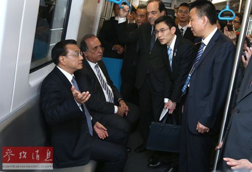 当地时间20日上午,李克强在巴西里约热内卢参观体验中国产地铁列车。