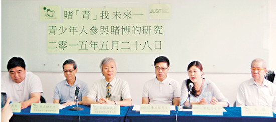 香港明爱展晴中心与JUST联合发布有关青少年参与赌博的研究。图自香港《文汇报》