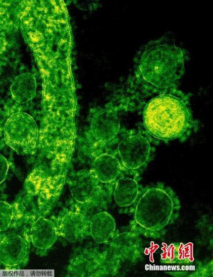 美国国家过敏症和传染病研究所发布的电子显微镜下的中东呼吸系统综合征冠状病毒(新型冠状病毒)的照片。 美联社