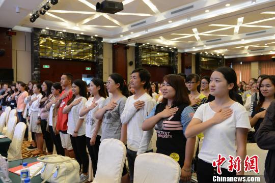 【延伸阅读】东南亚成云南大学生出国留学首选“香饽饽”图为培训现场,学员们比起“OK”手势 钟欣 摄