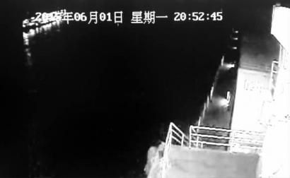 6月2日,“东方之星”客船从画面左上角驶入(翻拍)。记者从江苏物润船联公司获取一份视频资料和航行轨迹图。根据技术人员分析,视频中左上角驶过的四层航船就是“东方之星”。
