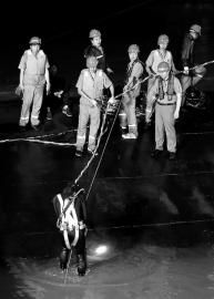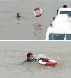 “怎样才能让小伙子上岸?”他和另一名叫官东的潜水员商量后,由官东将自己的救生设备给这名小伙子,让小伙子自己游出水面。官东自己则不用救生设备,浮游出水。