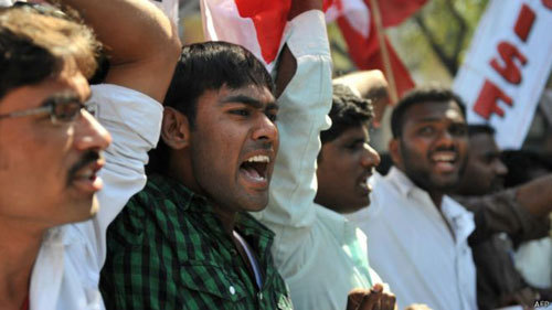 “三谷大学”的诈骗业务受害者多为印度学生。图为2011年印度学生在“三谷大学”外抗议。