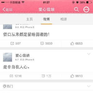 @爱心菇娘微博截图(图片来源:香港《南华早报》)
