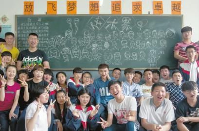这幅画已经在黑板上画了一周的时间,当一周前,刚看到后黑板上的“毕业照”时,同学们都很惊讶,“我看到过他画,当时看到了别的同学,后来看到了自己,感觉挺有意思的。”班中姐妹花中的姐姐房腊梅说。