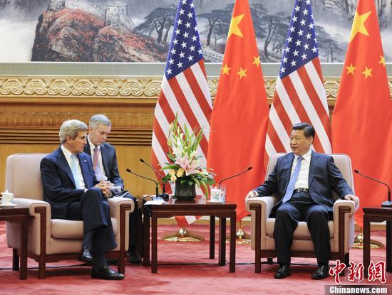 7月10日,中国国家主席习近平在北京人民大会堂会见来华出席第六轮中美战略与经济对话和第五轮中美人文交流高层磋商的美国国务卿克里、财政部长雅各布·卢等美方代表团主要成员。中新社发 刘震 摄
