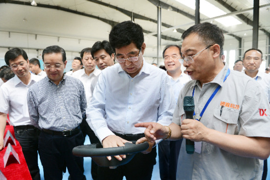图为巴音朝鲁、蒋超良、黄燕明等领导在通化通鑫玄武岩科技公司进行巡检。 记者 宋锴 摄
