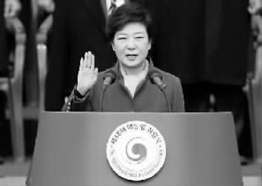 (韩国总统宣誓就职时不手抚任何文本,而是将右手举起。)