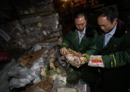 海关人员检获走私冻肉(香港《南华早报》网站)