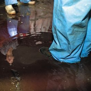 屠宰 被查处的黑窝点内,生猪屠宰后留下的满地猪血没过鞋面。