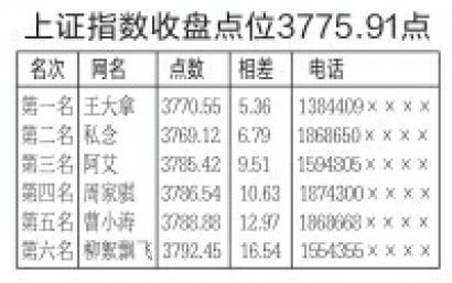 昨天长春财富圈的猜股指活动得到几百名粉丝的积极参与,共有6名获奖者。请中奖者携带手机至新文化报社一楼领奖。除第一名是1000元现金外,其余5名不分先后,均获得总价值近300元的大米两袋。