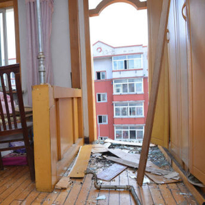 我去阳台瞅一眼,合计做什么晚饭,然后走到这里,轰隆一声全都下来了,给我吓得心嘣嘣跳,我就往门口跑,左邻右舍就敲门说,大姨快开门,你快出来吧,又是烟,呛,煤气味,我就说不出话了。