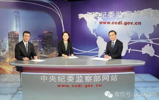 中纪委反腐三人谈,从左往右分别是白岩松、主持人和韩晋萍。