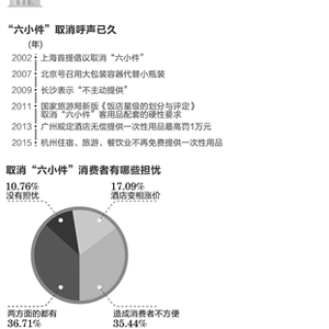 杭州多家星级酒店对于这个条例均表示支持,但 也有担心是否能落实到位。据了解,“六小件”耗费大、浪费大,这样的状况在酒店业内已经习以为常。杭州很多高星级酒店每年在这方面的成本开支高达百万元左 右。《条例》的实施,从企业角度讲可以给酒店节约成本,降低能耗。另外有人估算过,“六小件”的浪费率高达70%以上。并且,“六小件”多为塑料制品,填 埋后很难降解,对环境造成污染。