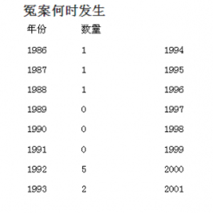 1996年及2001年是样本中死刑冤案发生的两个高峰,历史上,这恰巧对应了两次全国性“严打”。(文二所提及的刘钟明案,即是发生在这一历史时期)