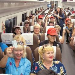 “乌拉!乌拉!”在C1012次列车刚刚启动,6号车厢里数十名白皮肤、黄头发的外国旅客爆发出欢呼声。