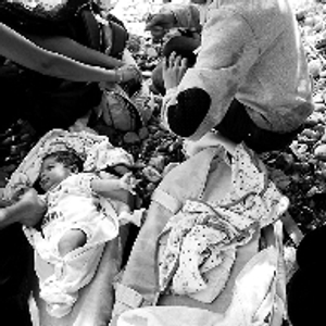 一对叙利亚夫妇日前冒着生命危险,带着仅8个月大的双胞胎婴儿偷渡爱琴海,从土耳其抵达希腊莱斯博斯岛。爸爸抱着其中一个婴儿难掩心酸。