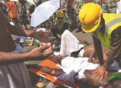 事故发生后,处于待命状态的沙特民防和急救部门出动4000多人参与救援。 媒体记者在现场看到,另有数架直升机在事发地上空盘旋。目前,死者和伤者都已被送往米纳的各家医院。