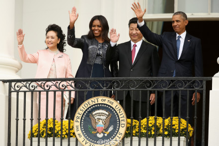 习近平访华盛顿 彭丽媛宝蓝礼服亮相